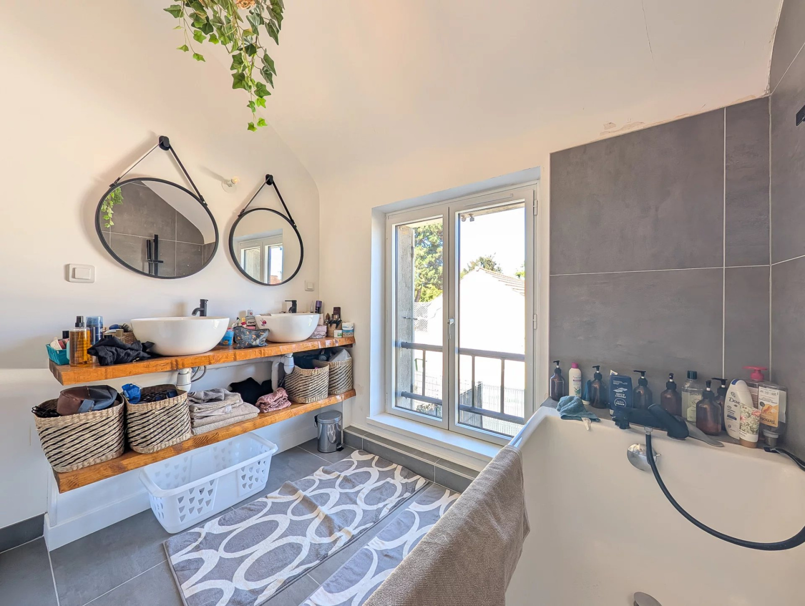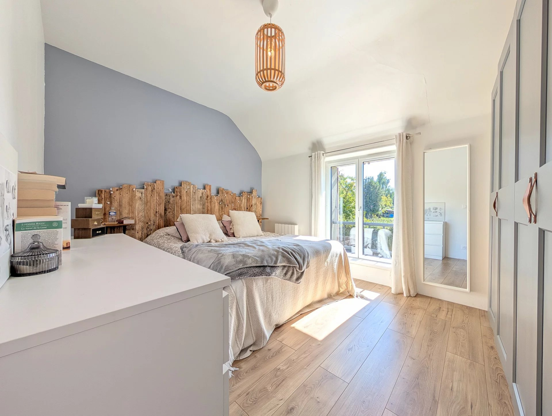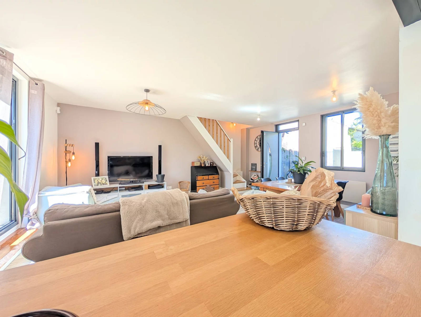 La maison est en double mitoyenneté mais sans conséquence acoustique. Deux places de parking.