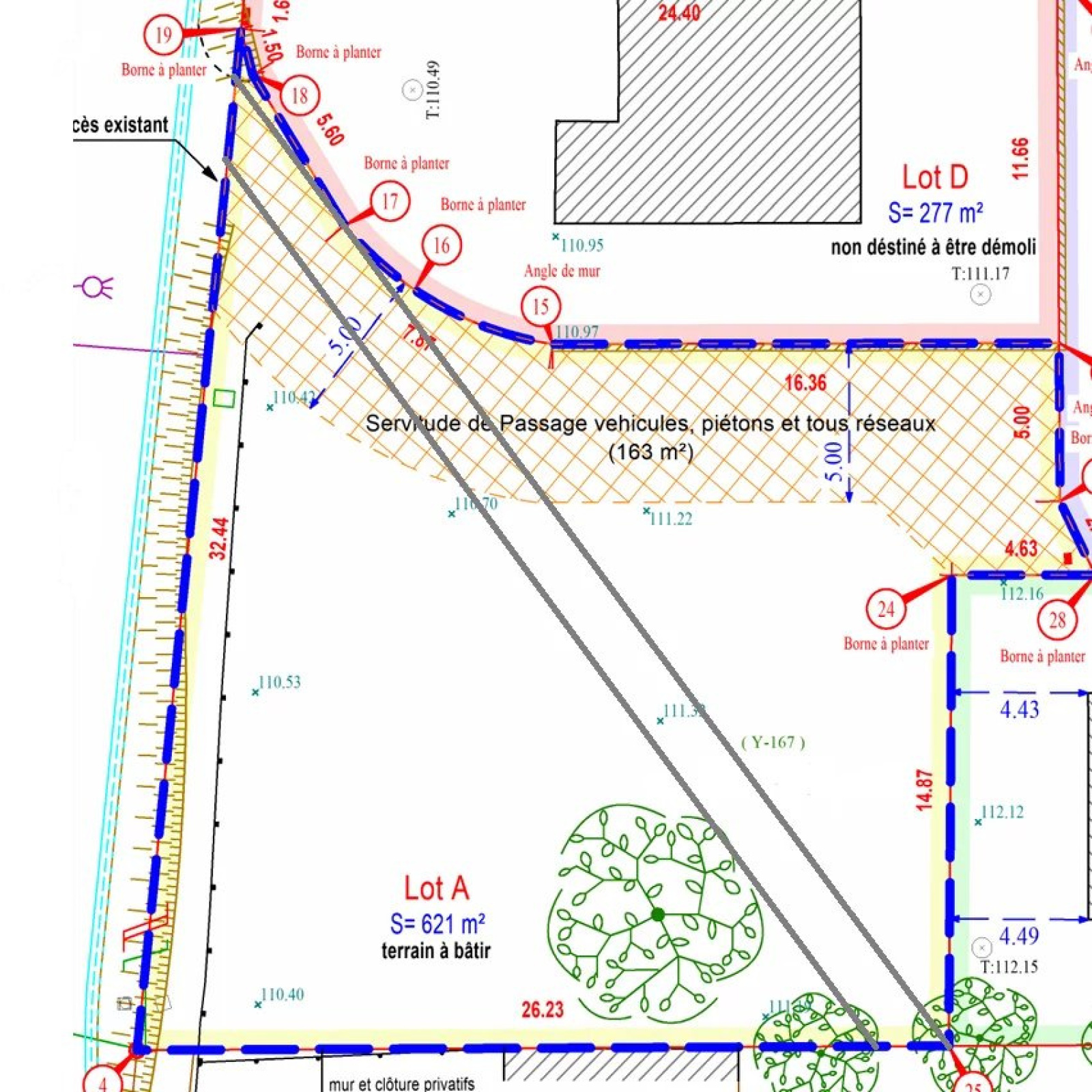 Exclusivité Informations importantes : l'allée d'environ 150 m² intégrée dans l'assiette des 621 m² du terrain sera rétrocédée après la construction aux trois autres indivis, et une servitude de passage (piétons et engins non motorisés) d'un largeur de 2m est présente sur l'avant de la maison. Voir plan en photo n°3. Situé à Galluis, proche des écoles, commerces, gare de Méré-Montfort l'Amaury et de la N12, terrain de 621 m² viabilisé situé en zone UHb du PLU. Emprise au sol possible de 15 %, possibilité R+1+c. Sol argileux.