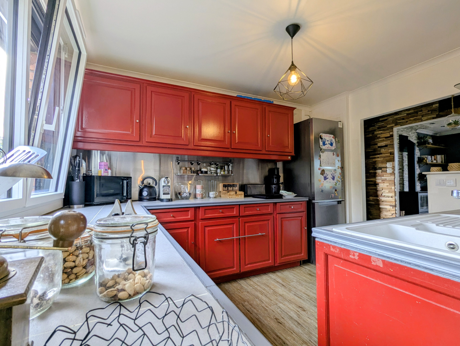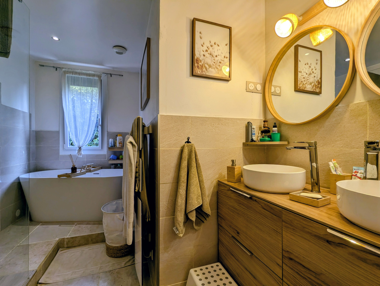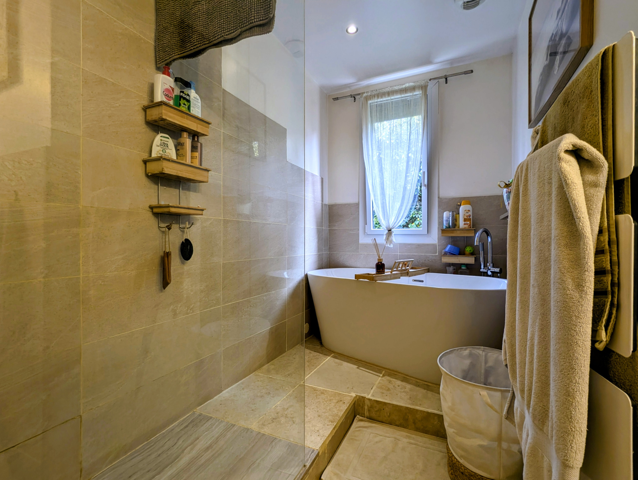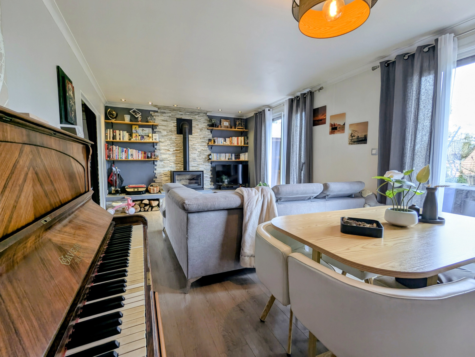 Travaux récents : menuiseries aluminium, radiateurs, cheminée insert, salle de bains, WC, terrasse, portail électrique, volets roulants électriques, porte de garage électrique.