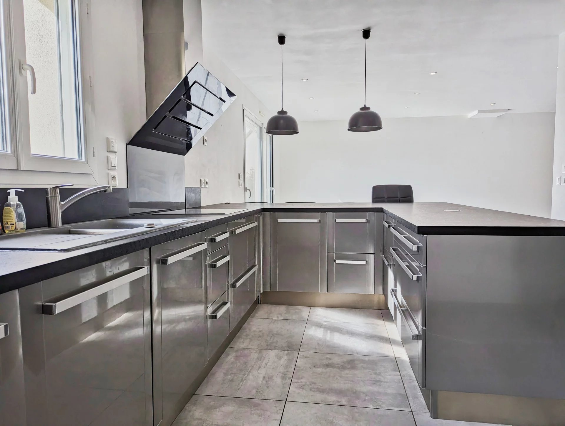 Équipements : portail et porte de garage électriques, double vitrage, volets roulants électriques centralisés, fibre, cuisine aménagée et équipée, VMC, vide sanitaire, puisard.