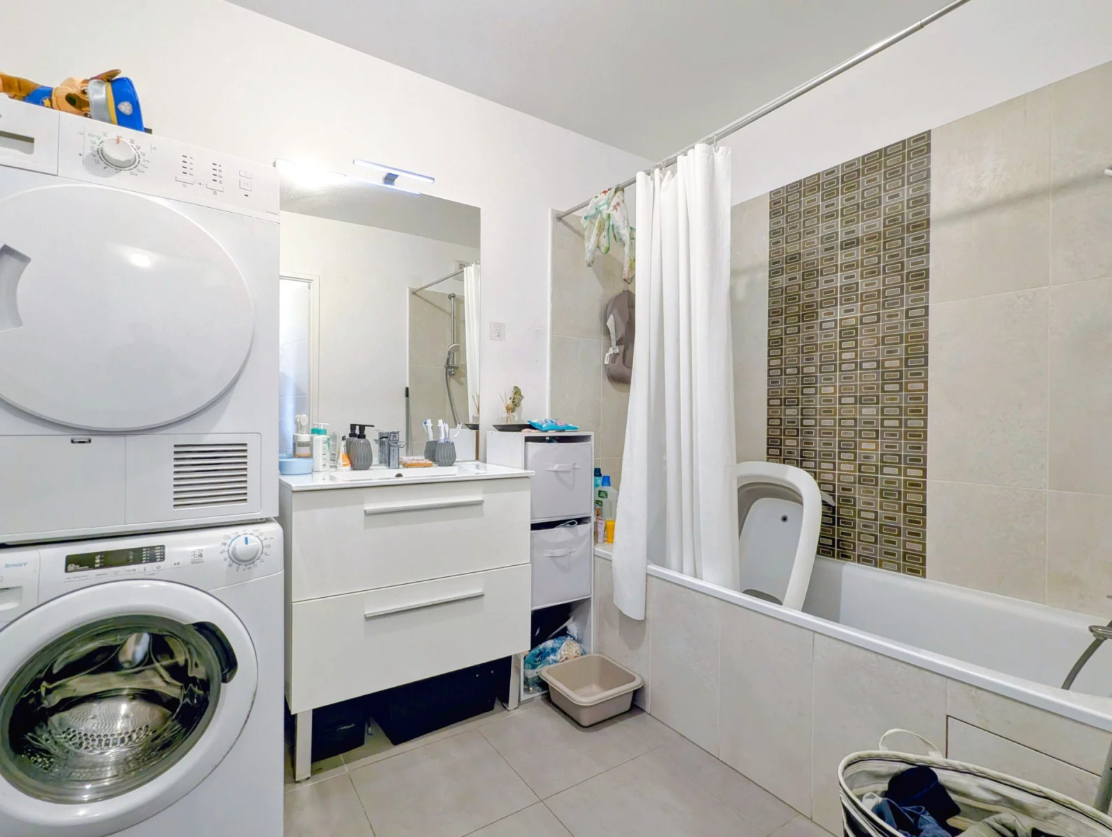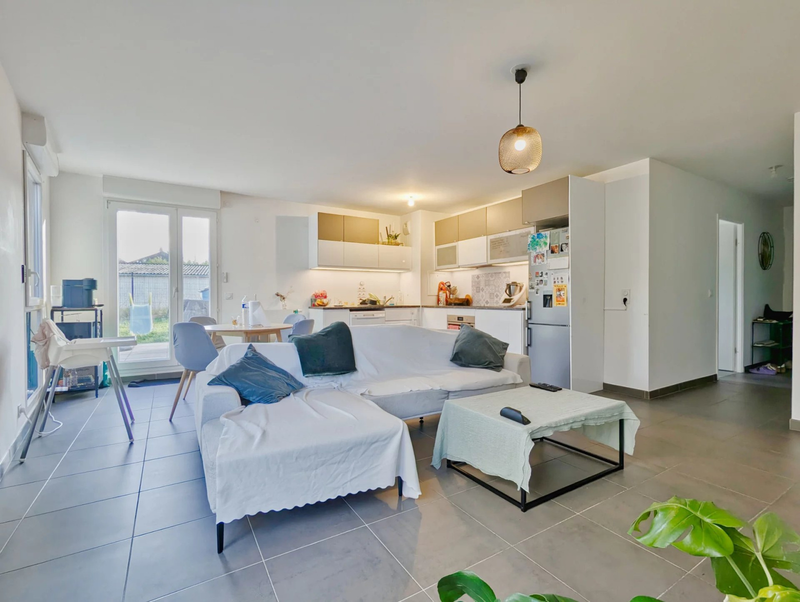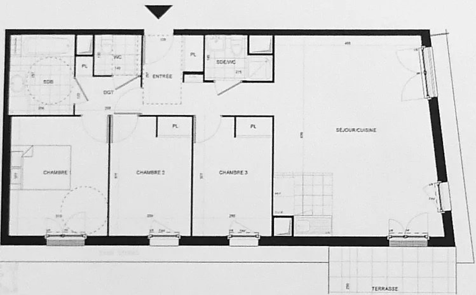 D'une superficie habitable de 82,86 m² (Carrez), il propose une entrée avec placard, un séjour avec cuisine ouverte (31,80 m²), 3 chambres, dégagement/couloir avec placards, une salle de bains, une salle de douche avec WC et un WC séparé.